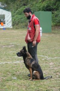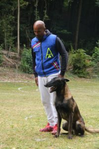 Chien en blanc d’échelon 1